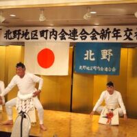 北野地区新年交礼会を開催しました 岡本町連会長らがユーモアたっぷりの土俵入りを披露 今年も会場は大盛り上がりでした